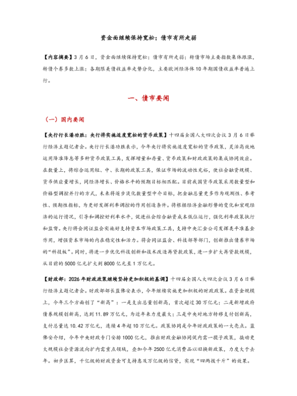 【东方金诚】【202603】资金面继续保持宽松;债市有所走弱-9页 证券期货研究报告