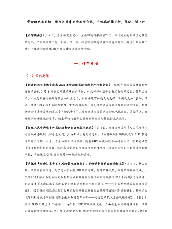 【东方金诚】【20250707】资金面充盈宽松;债市收益率走势有所分化-7页 行业研究