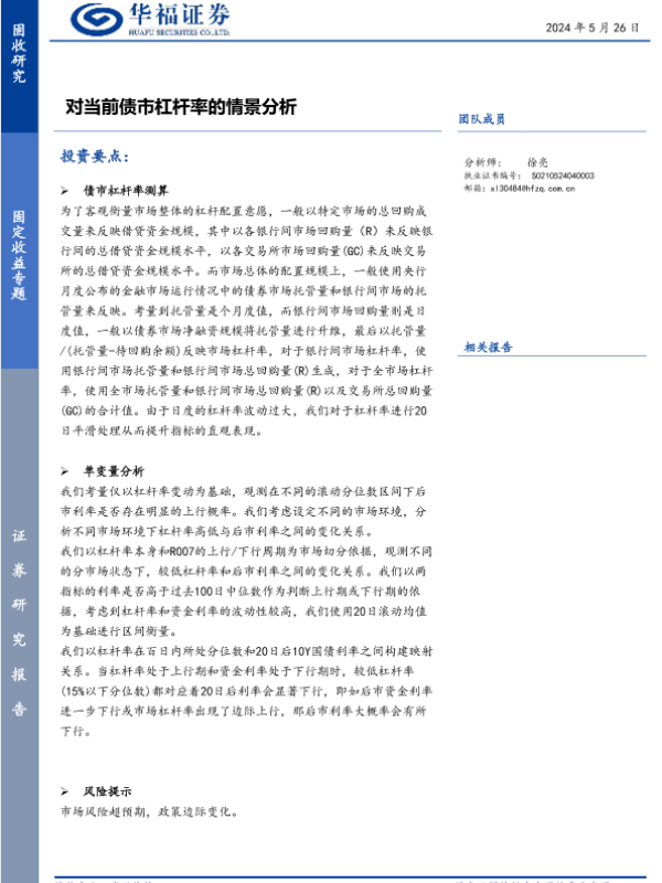 【华福证券】【20240526】固定收益专题:对当前债市杠杆率的情景分析-11页 行业研究