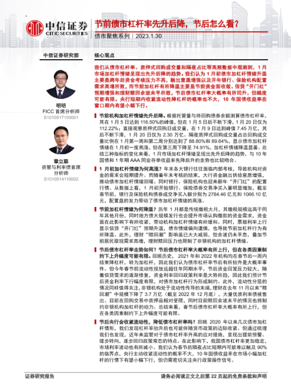 【中信证券】【20230130】节前债市杠杆率先升后降,节后怎么看?-23页 行业研究