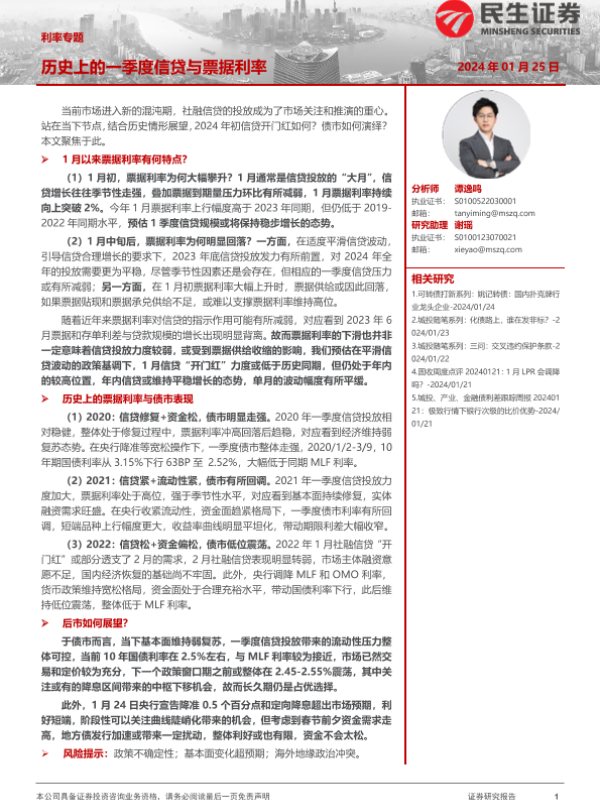【民生证券】【20240125】利率专题:历史上的一季度信贷与票据利率-20页 行业研究
