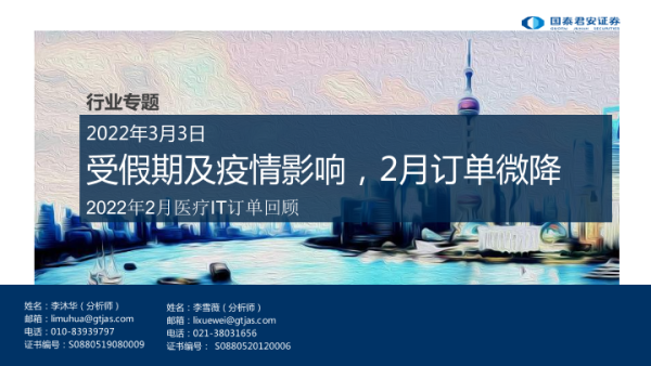 【国泰君安证券】【20220303】2022年2月医疗IT订单回顾-10页 行业研究