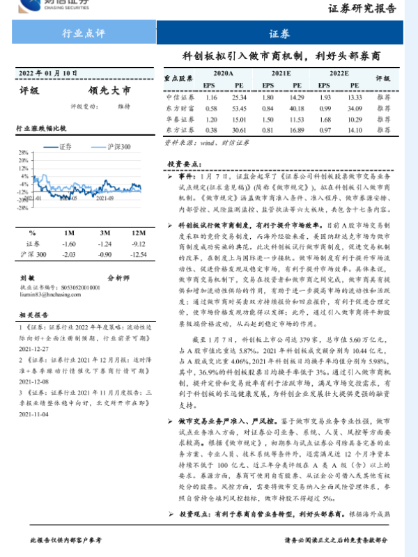 【财信证券】【20220110】证券行业点评:科创板拟引入做市商机制,利好头部券商-3页 行业研究