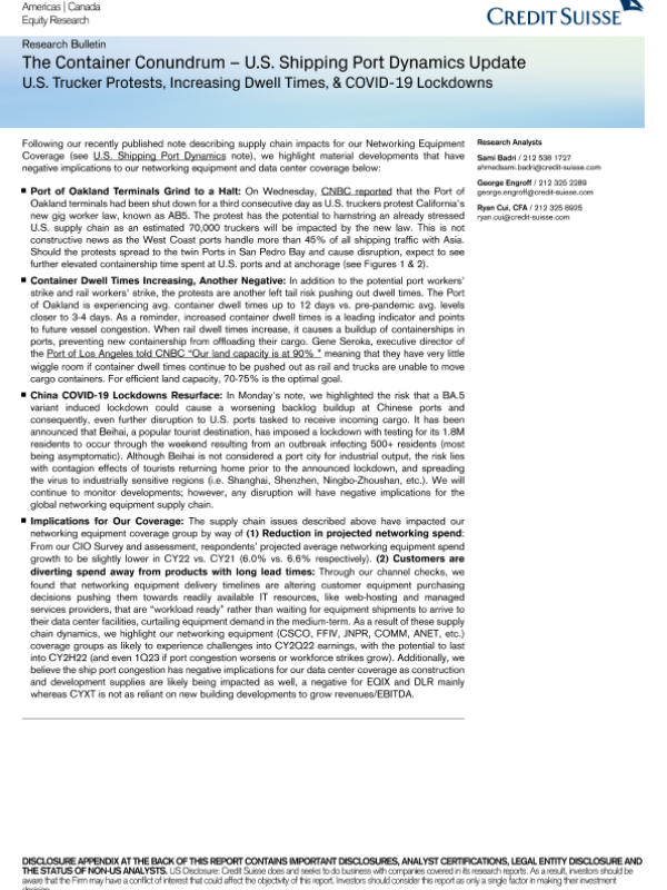 【Credit Suisse】【20220721】CS-The Container Conundrum – U.S. Shipping Port Dynamics Update-8页 行业研究