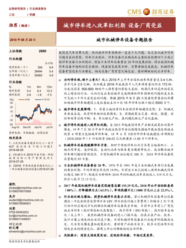 【海通证券】【20190820】城市机械停车设备专题报告:城市停车进入改革红利期 设备厂商受益-33页 行业研究