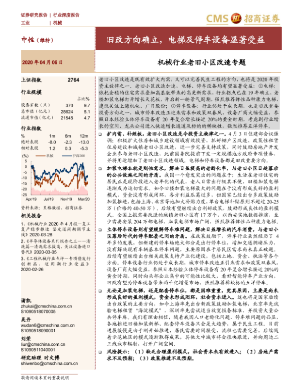 【海通证券】【20200406】机械行业老旧小区改造专题:旧改方向确立,电梯及停车设备显著受益-20页 行业研究