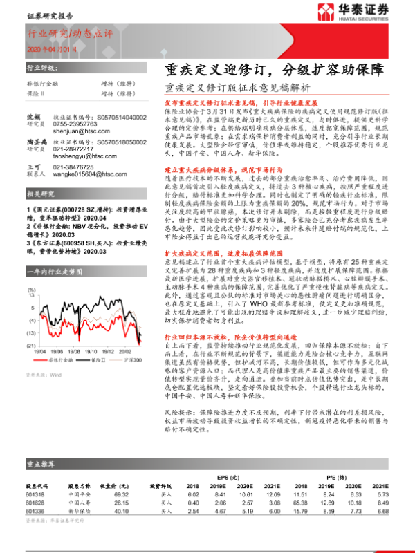 【华泰证券】【20200401】非银行金融:重疾定义修订版征求意见稿解析:保险重疾定义迎修订,分级扩容助保障-5页 行业研究
