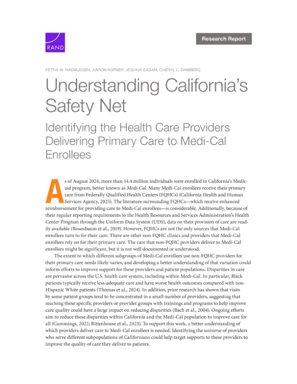 【RAND&California Health Care Foundation】【2025】Understanding California’s Safety Net Identifying the Health Care Providers Delivering Primary Care to Medi-Cal Enrollees-36页 市场调研
