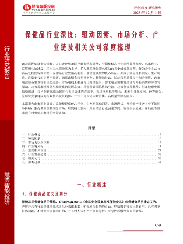 【慧博智慧博能投研】【2025】保健品行业深度:驱动因素、市场分析、产业链及相关公司深度梳理-41页 行业研究