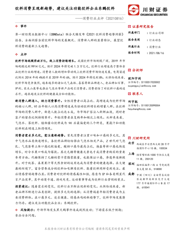 【川财证券】【20210816】消费行业点评:饮料消费呈现新趋势,建议关注功能饮料企业东鹏饮料-2页 证券期货研究报告