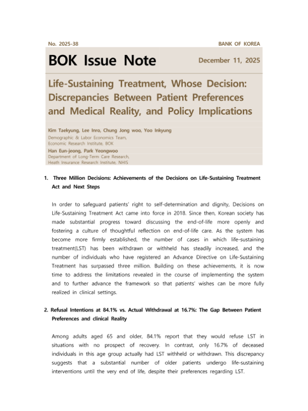 【Bank of Korea&National Health Insurance Service】【202512】维持生命的治疗,谁的决定:患者偏好与医疗现实之间的差异及其政策影响-66页 政策文件