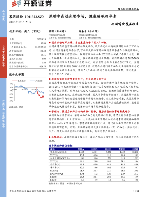 【开源证券】【20220920】深耕中高端床垫市场,健康睡眠领导者-34页 公司研究