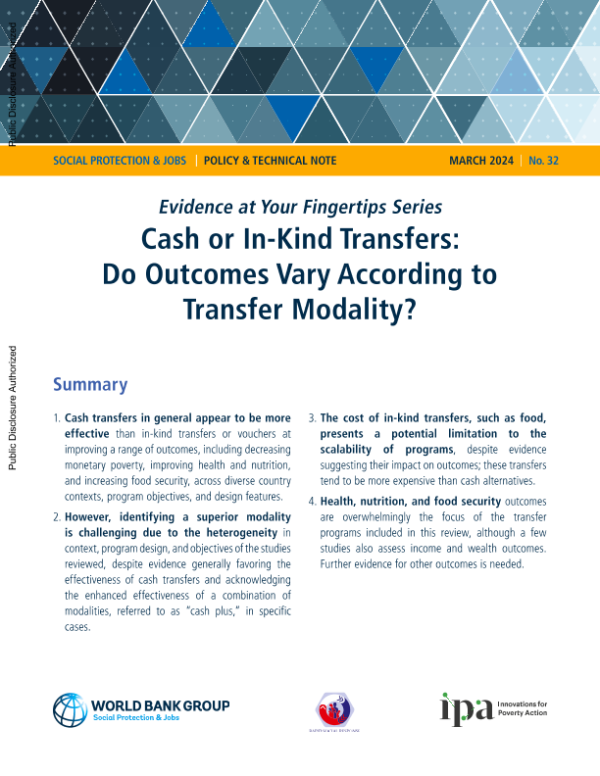 【世界银行】【202403】Cash or In-Kind Transfers Do Outcomes Vary According to Transfer Modality?-8页 政策文件