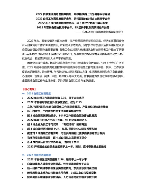 【智联招聘】【20220101】2022年白领满意度指数调研报告-31页 行业研究