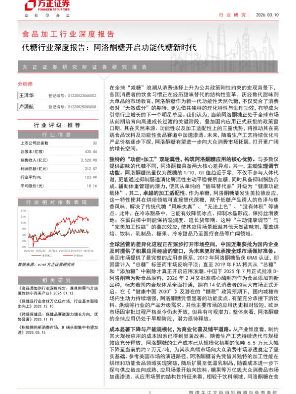 【方正证券】【202603】食品加工行业深度报告:代糖行业深度报告:阿洛酮糖开启功能代糖新时代-30页 行业研究