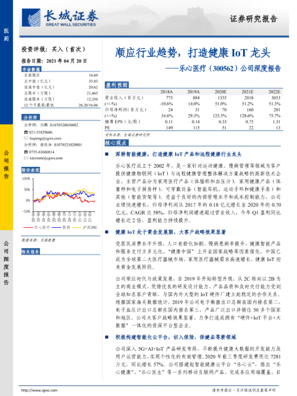 【长城证券】【20210420】乐心医疗-300562.SZ-公司深度报告:顺应行业趋势,打造健康IoT龙头-15页 行业研究