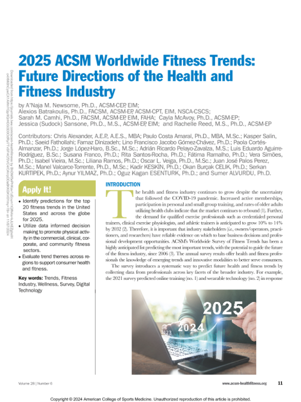 【美国运动医学会(ACSM)】【2024】2025年全球健身趋势:健康和健身行业的未来方向-15页 行业研究