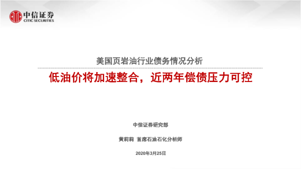 【中信证券】【20200325】美国页岩油行业债务情况分析:低油价将加速整合,近两年偿债压力可控-21页 行业研究