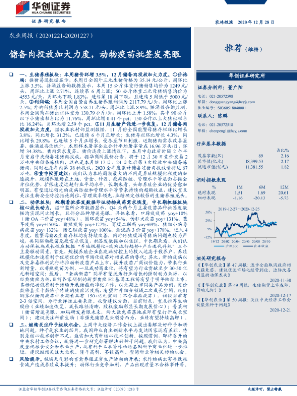 【华创证券】【20201228】20201228-华创证券-农业周报:储备肉投放加大力度,动物疫苗批签发亮眼-22页 行业研究