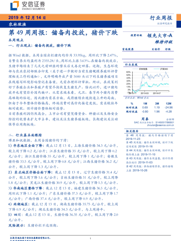 【安信证券】【20191214】农林牧渔第49周周报:储备肉投放,猪价下跌-20页 行业研究