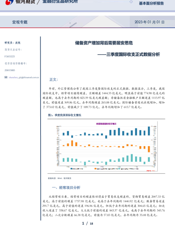 【银河期货】【20230101】三季度国际收支正式数据分析:储备资产增加背后需要居安思危-18页 行业研究