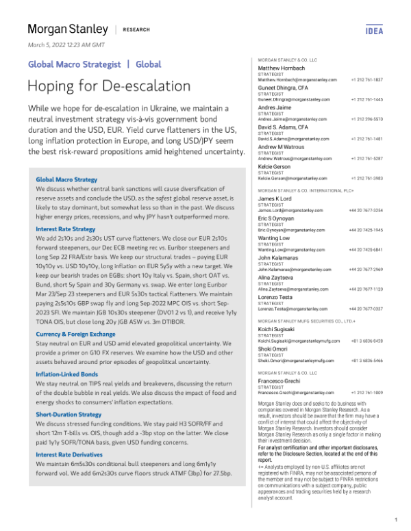 【Morgan Stanley】【20220305】摩根士丹利-全球宏观策略-希望缓和局势-117页 行业研究