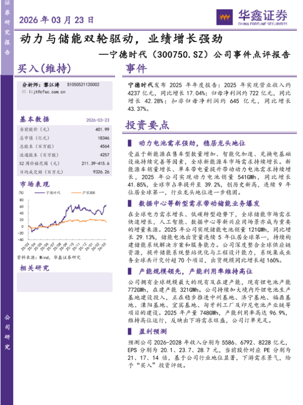 【华鑫证券】【202603】动力与储能双轮驱动,业绩增长强劲-5页 证券期货研究报告