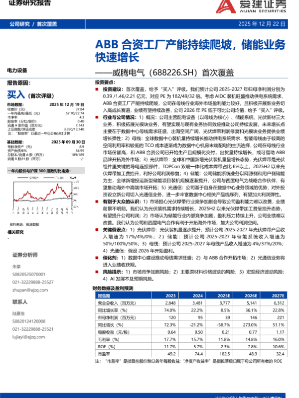 【爱建证券】【202512】ABB合资工厂产能持续爬坡,储能业务快速增长——威腾电气(688226.SH)首次覆盖-8页 证券期货研究报告