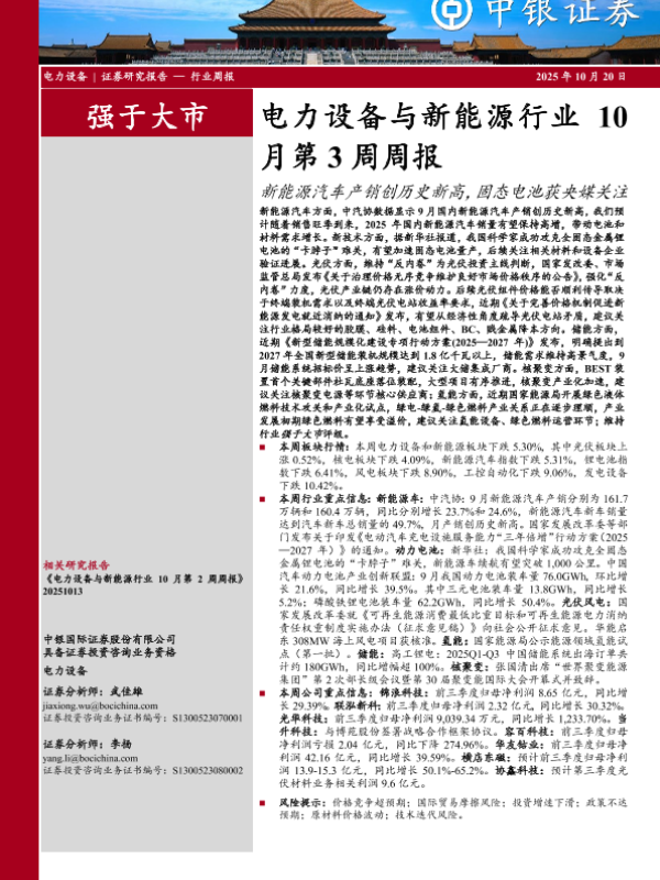 【中银证券】【202510】电力设备与新能源行业 10月第3周周报-14页 证券期货研究报告