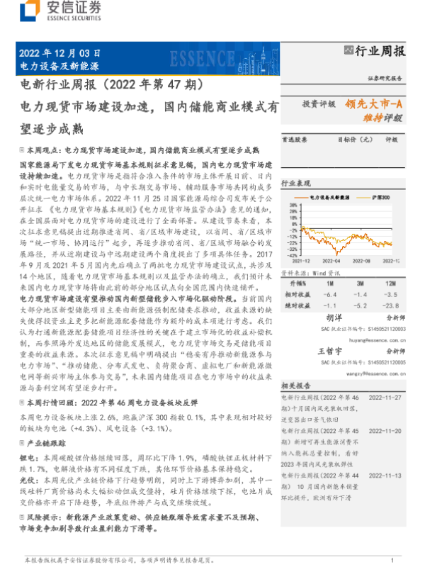 【安信证券】【20221203】电力设备行业周报:11月电车交付数据向好,储能市场化发展在即-16页 行业研究