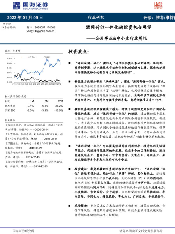 【国海证券】【20220109】公用事业&中小盘行业周报:源网荷储一体化的投资机会展望-17页 行业研究