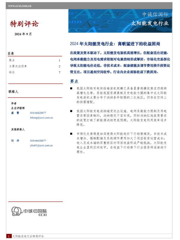 【中诚信国际】【2024】2024年太阳能发电行业:高歌猛进下的收益困局-9页 行业研究