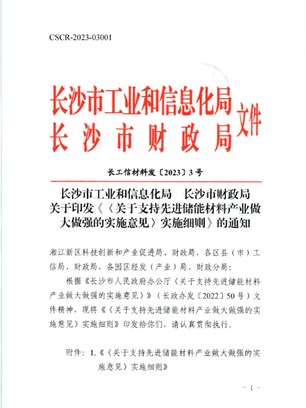【长沙市工业和信息化局】【20230201】关于支持先进储能材料产业做大做强的实施意见实施细则-15页 政策文件