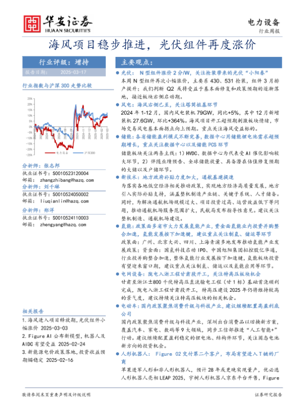 【华安证券】【20250317】20250317-华安证券-电力设备行业周报:海风项目稳步推进,光伏组件再度涨价-17页 行业研究