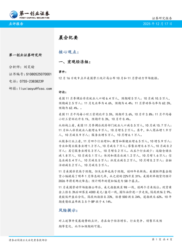 【第一创业证券】【202512】晨会纪要-4页 会议纪要
