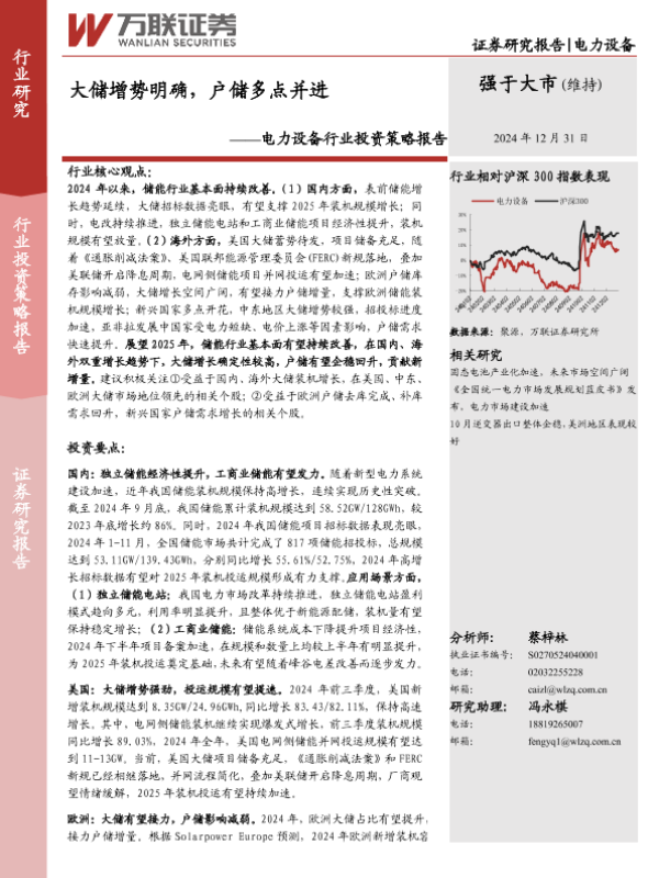 【万联证券】【20241231】电力设备行业投资策略报告:大储增势明确,户储多点并进-30页 行业研究