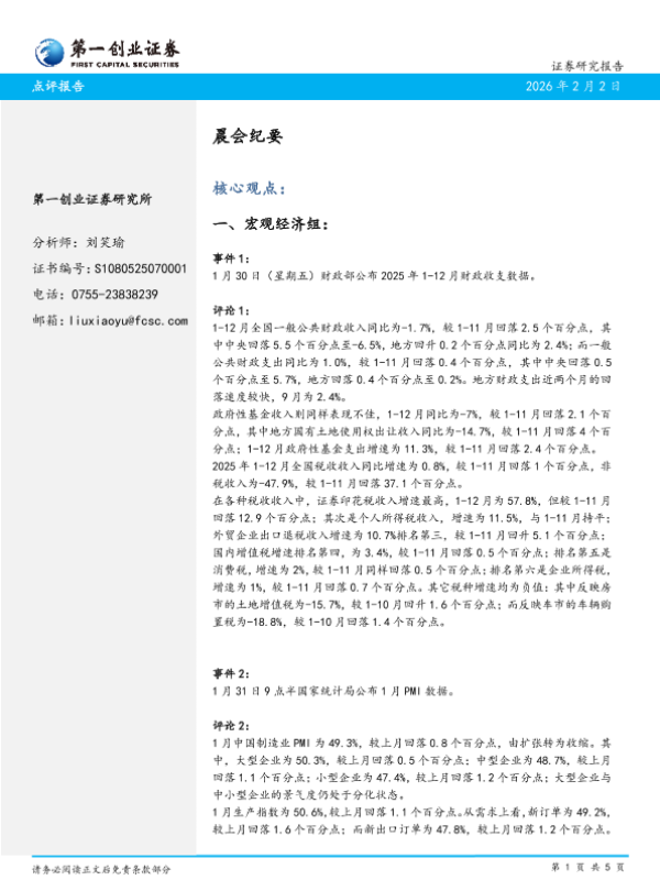 【第一创业证券】【202602】晨会纪要-5页 会议纪要