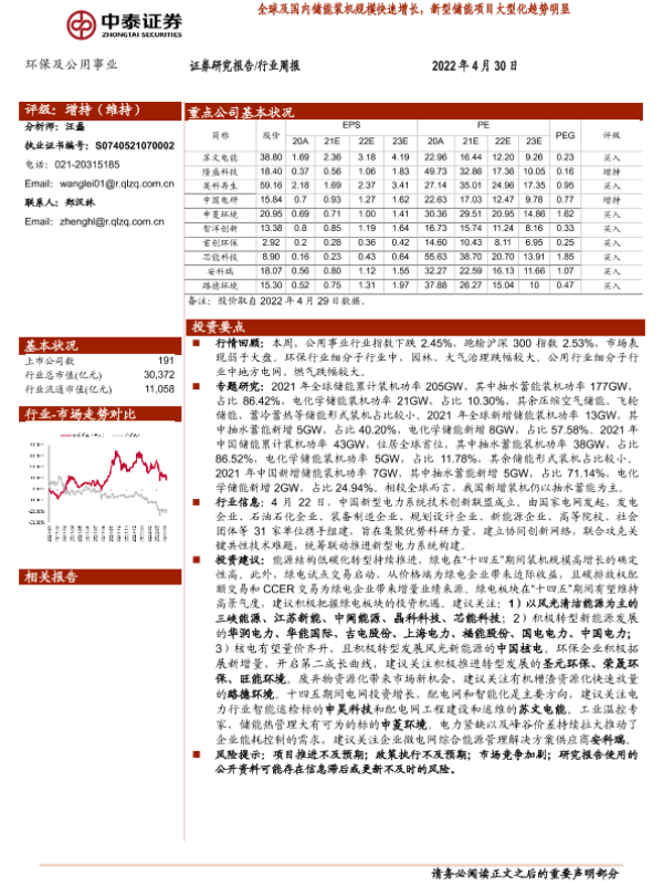 【中泰证券】【20220430】全球及国内储能装机规模快速增长,新型储能项目大型化趋势明显-21页 行业研究