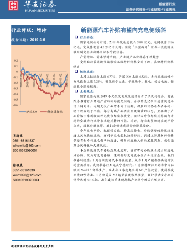 【华安证券】【20190305】20190305-华安证券-新能源行业周报:新能源汽车补贴有望向充电侧倾斜-12页 行业研究