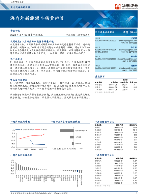 【华泰证券】【20230407】电力设备与新能源行业周报(第十四周):海内外新能源车销量回暖-23页 行业研究