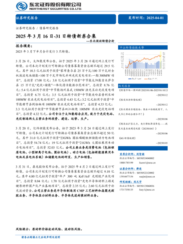 【东北证券】【20250401】2025年3月16日-31日转债新券合集-36页 证券期货研究报告