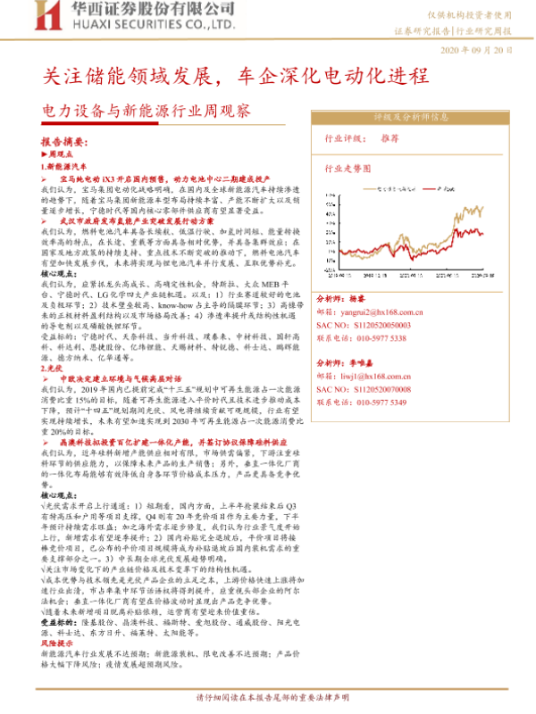 【华西证券】【20200920】电力设备与新能源行业周观察:关注储能领域发展,车企深化电动化进程-15页 行业研究