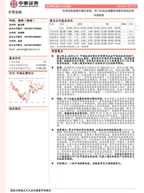 【中泰证券】【20200105】非银周报:市场活跃度提升看好券商,开门红验证储蓄险销售形势的好转-12页 行业研究