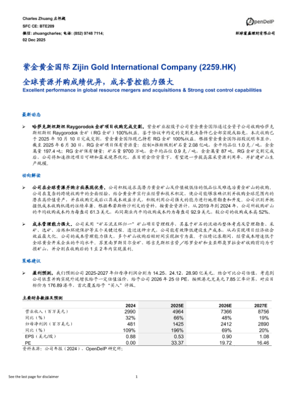 【环球富盛理财有限公司】【202512】全球资源并购成绩优异,成本管控能力强大-9页 证券期货研究报告