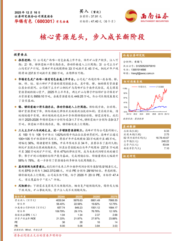 【民生证券】【202508】华锡有色(600301.SH)2025年半年报点评:锡锑共振助力业绩增长,未来增储潜力可期-21页 证券期货研究报告