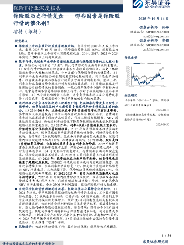 【东吴证券】【202510】保险Ⅱ行业深度报告:保险股历史行情复盘——哪些因素是保险股行情的催化剂?-34页 证券期货研究报告