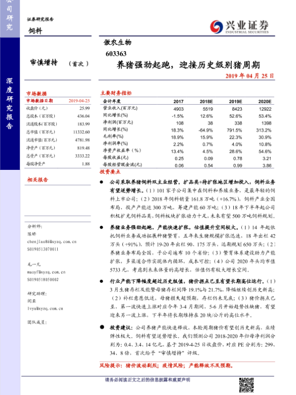 【兴业证券】【20190425】养猪强劲起跑,迎接历史级别猪周期-30页 行业研究