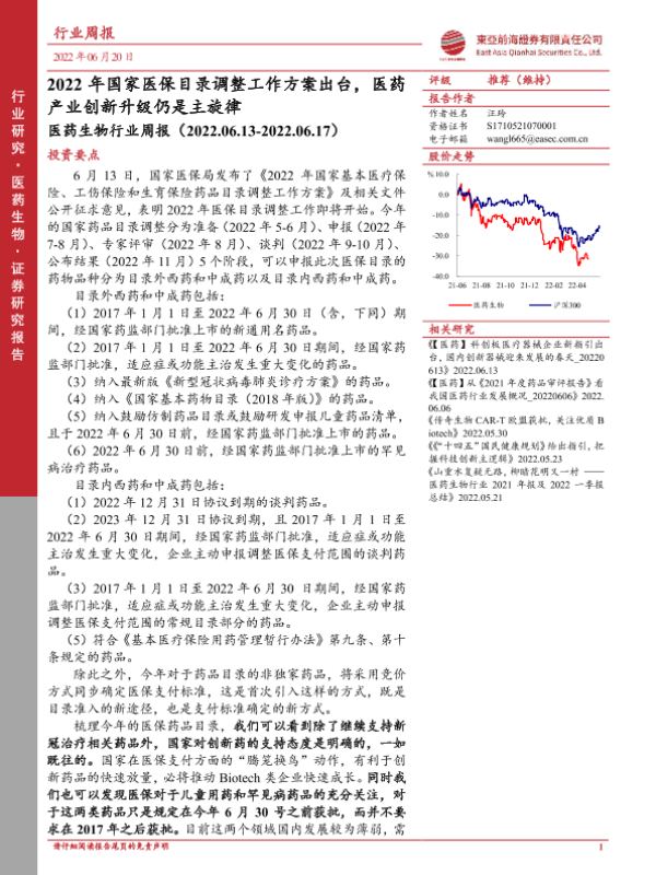 【东亚前海证券】【20220620】2022年国家医保目录调整工作方案出台,医药产业创新升级仍是主旋律-13页 行业研究