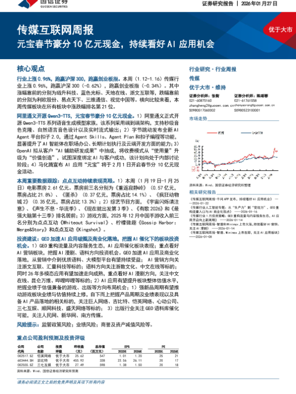 【国信证券】【202601】传媒互联网周报:元宝春节豪分10亿元现金,持续看好AI应用机会-14页 证券期货研究报告