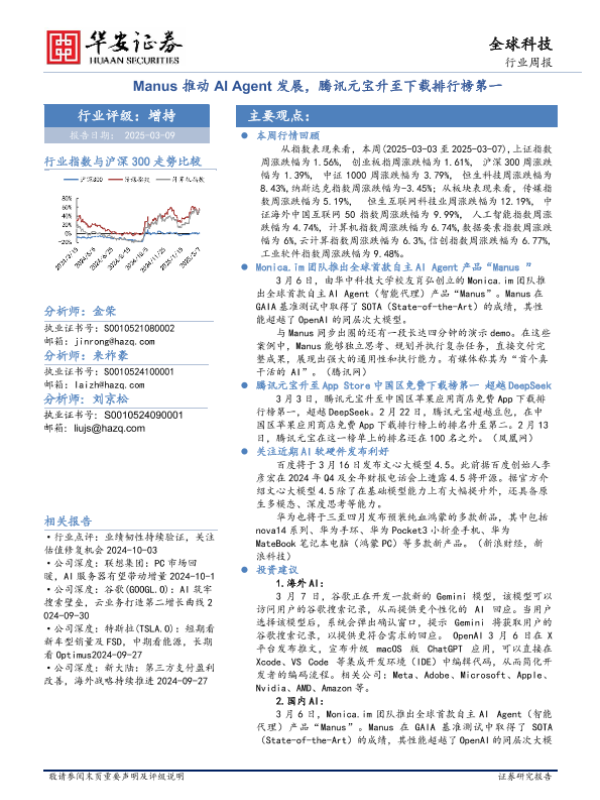 【华安证券】【20250309】全球科技行业周报:Manus推动AI Agent发展,腾讯元宝升至下载排行榜第一-27页 行业研究